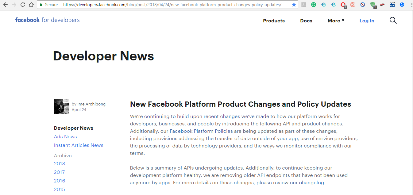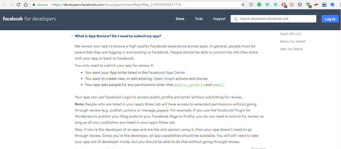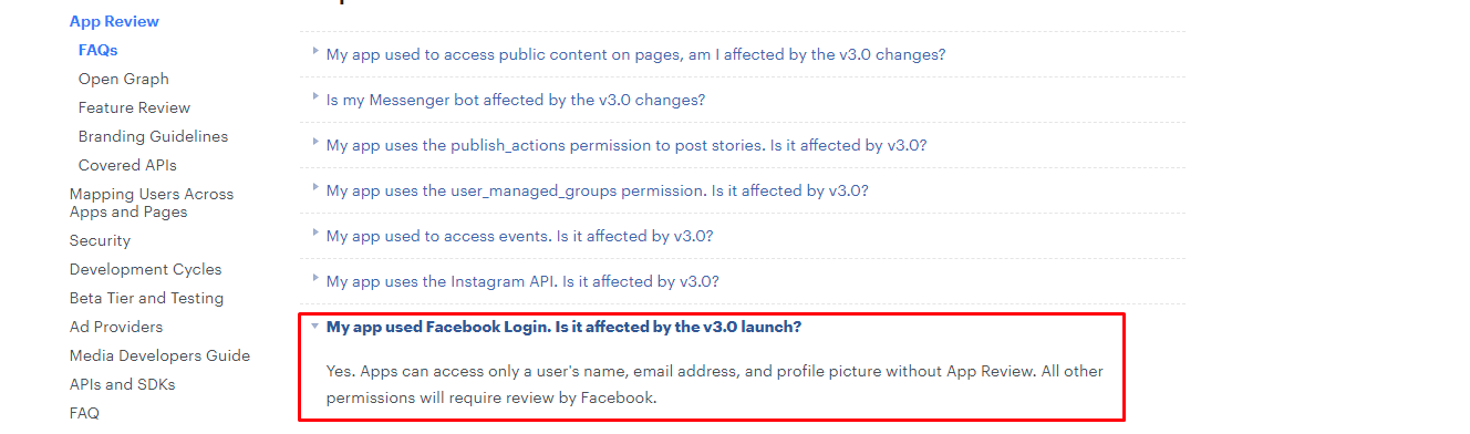Facebook stated change in their policy in which they will put all API involved applications under review - https://developers.facebook.com/blog/post/2018/04/24/new-facebook-platform-product-changes-policy-updates/https://developers.facebook.com/docs/apps/review/faqs/#graph-api-3-0